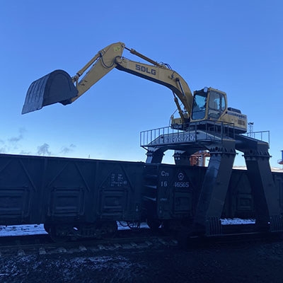 適用范圍:適用于火車、貨車裝卸料,在挖 掘機底盤上加裝四個高腿,橫跨在車廂上,增加作業(yè)高度范圍。